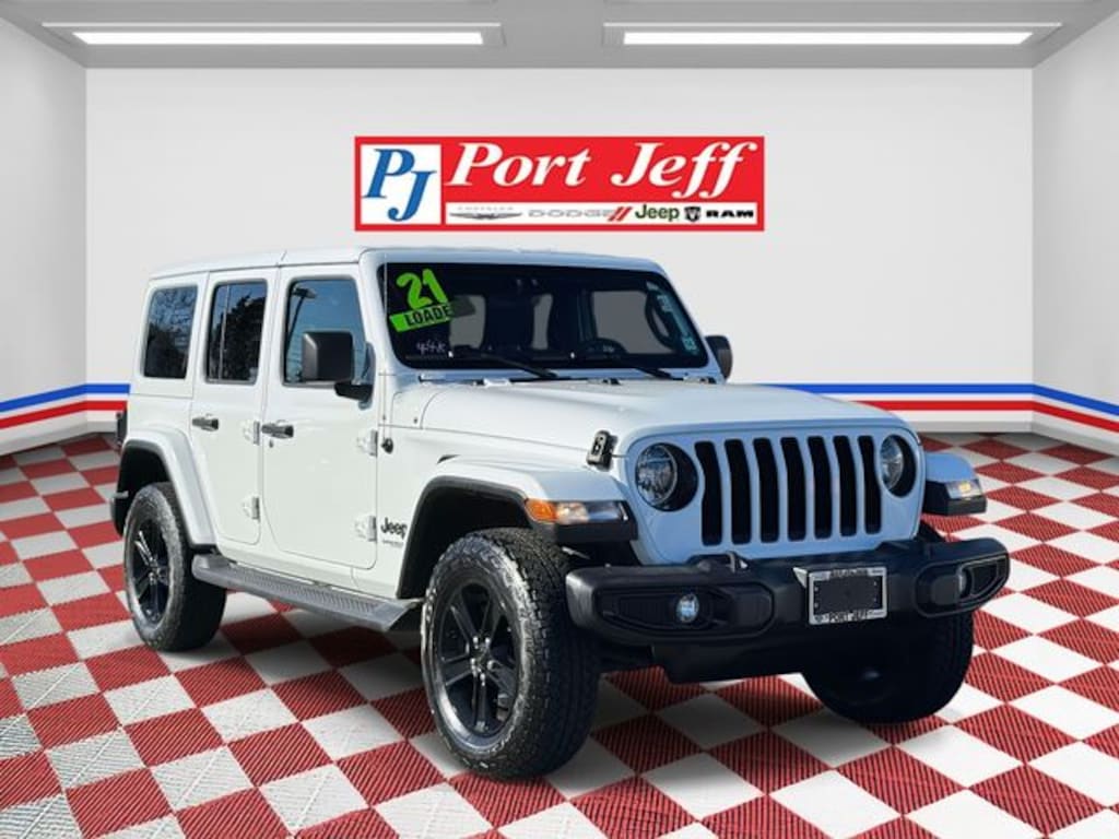 2021 Jeep Wrangler Unlimited Sahara Altitude 4WD 8-Speed Automatic 2.0L I4 DOHC Bright White Clearcoat TWO SETS OF KEYS, CERTIFED, MUST QUALIFY FOR ALL REBATES, Altitude Package, Apple CarPlay/Android Auto, Black Interior Accents, Black Trail Rated Badge, Body Color 3-Piece Hard Top, Body Color Grille w/Gloss Black Rings, Cold Weather Group, Heated door mirrors, Heated Front Seats, Heated Steering Wheel, Leather Trimmed Bucket Seats, Leather Wrapped Park Brake Handle, Leather Wrapped Shift Knob, Matte Black Jeep Badge, Mold In Color Bumper w/Gloss Black, MOPAR Hardtop Headliner, Power door mirrors, Power steering, Power windows, Quick Order Package 22L Altitude, Wheels: 18" x 7.5" Gloss Black Aluminum, Wizard Black Instrument Panel Bezels.